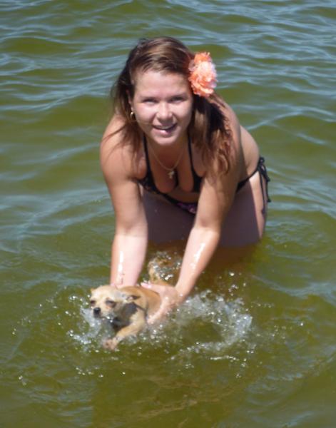 На второй я ПЛЫВУ, моська серьезная такая!