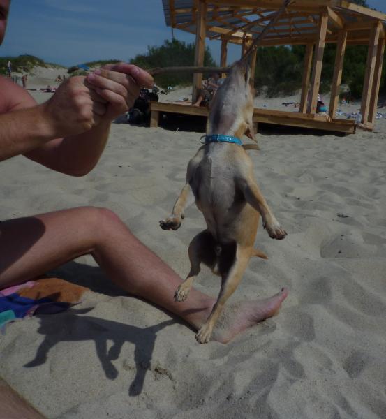 Мы тоже на всяких прохожих бросались со звонким лаем, особенно на детей с кругами - это нечто!!! Выпрашивали колбасу, препирались с мамкой и возмущались, т.к. она не разрешала есть колбасу! Очищали пляж от палочек тоже очень усердно!!!