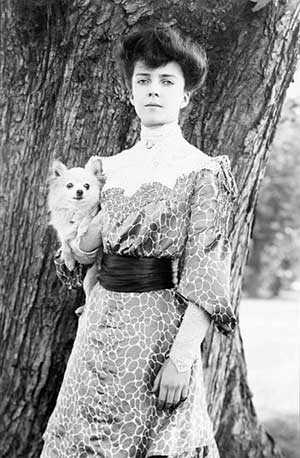 На фото Элис Рузвельт со своей чихуа., фото сделано в 1902 г.