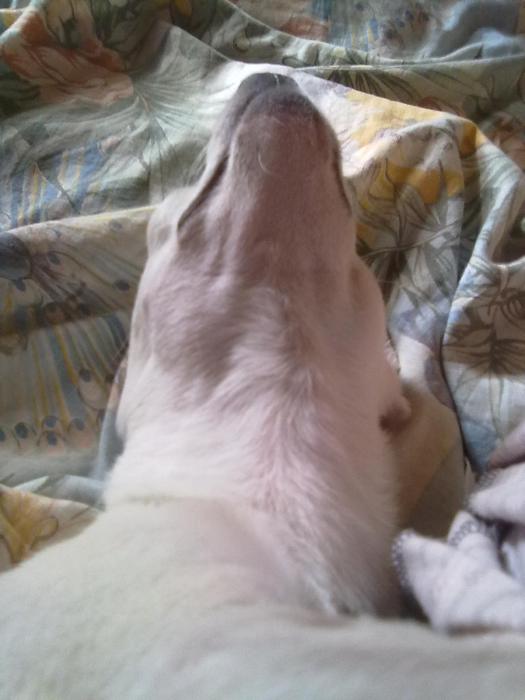 Моя любимая девочка спит рядом с нашей кроватью на покрывале, которое мы с кровати снимаем - оно такое пышное и получается, когда его складываешь, такое для нее высокое спальное место (хотя у нее есть свой лежак естесственно, но он в другой комнате). В общем, забиратеся она туда ровно тогда когда мы идем спать и выключаем свет, а встает только тогда когда мы начинаем копошиться на кровати. Тогда она мордочкой облокачивается на край кровати (выше-то не достать) и пытается прыгнуть к нам. Я или муж её сразу берем и начинается повсеместный полиз - лицо, руки, ноги и т.д. )))) Если кто-то остается дальше спать - она тоже ложится и спит, пока тот не встанет (чаще это бываю я). Вот такая у нас утренняя история.