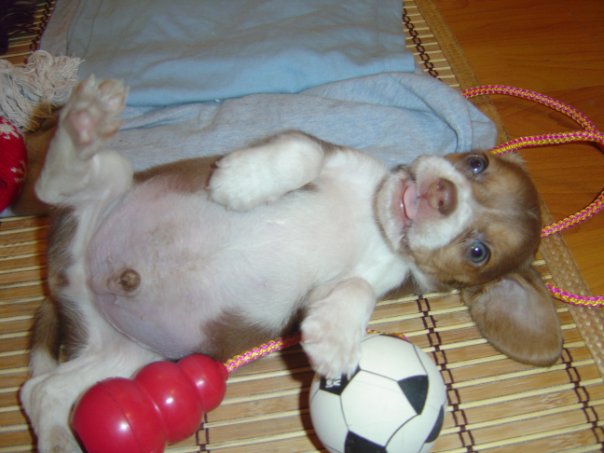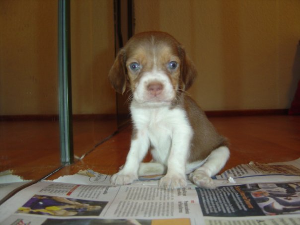 Бигль запрещённого, печеночного окраса, но не смогла не влюбиться в это голубоглазое пузатое чудо.