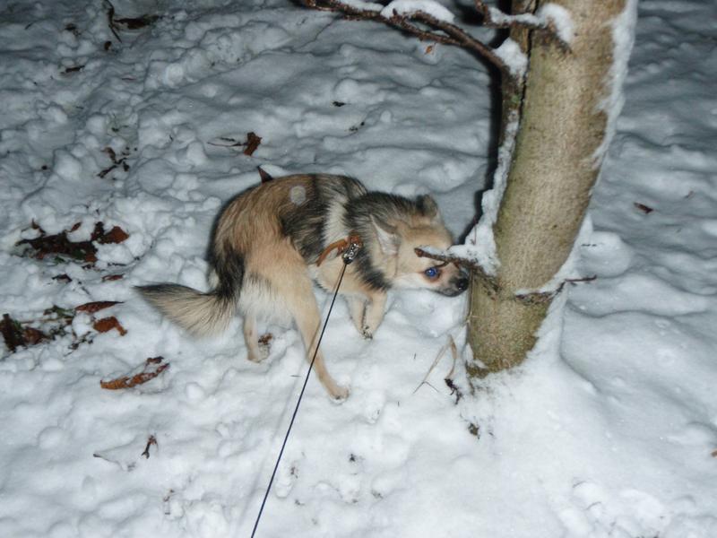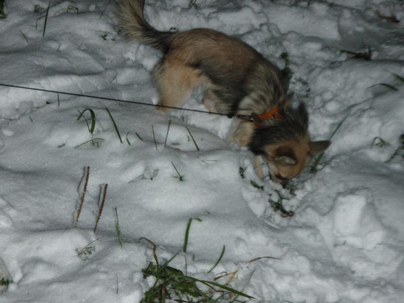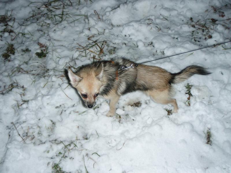 Вчера тоже Герса выводила на прогулку, прыгал по снегу как заяц.