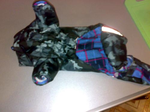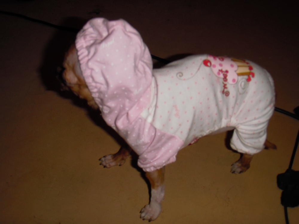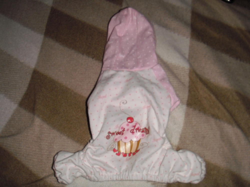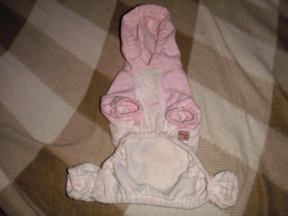 У меня есть симпатичная пижамка с капюшончиком, с рукавами и штанинами, самого маленького размера XS. Одевала один раз на свою... ей не нравится, а заставлять нельзя, чтобы не справоцировать .... покупала за 550 р... Скажу честно - бесплатно отдавать жалко, если кому нужно - продам за Вашу цену. Для заинтересовавшихся этой пижамкой, если таковые будут, сделаю фото отдельно и могу на собаке. Пишите, кому надо.