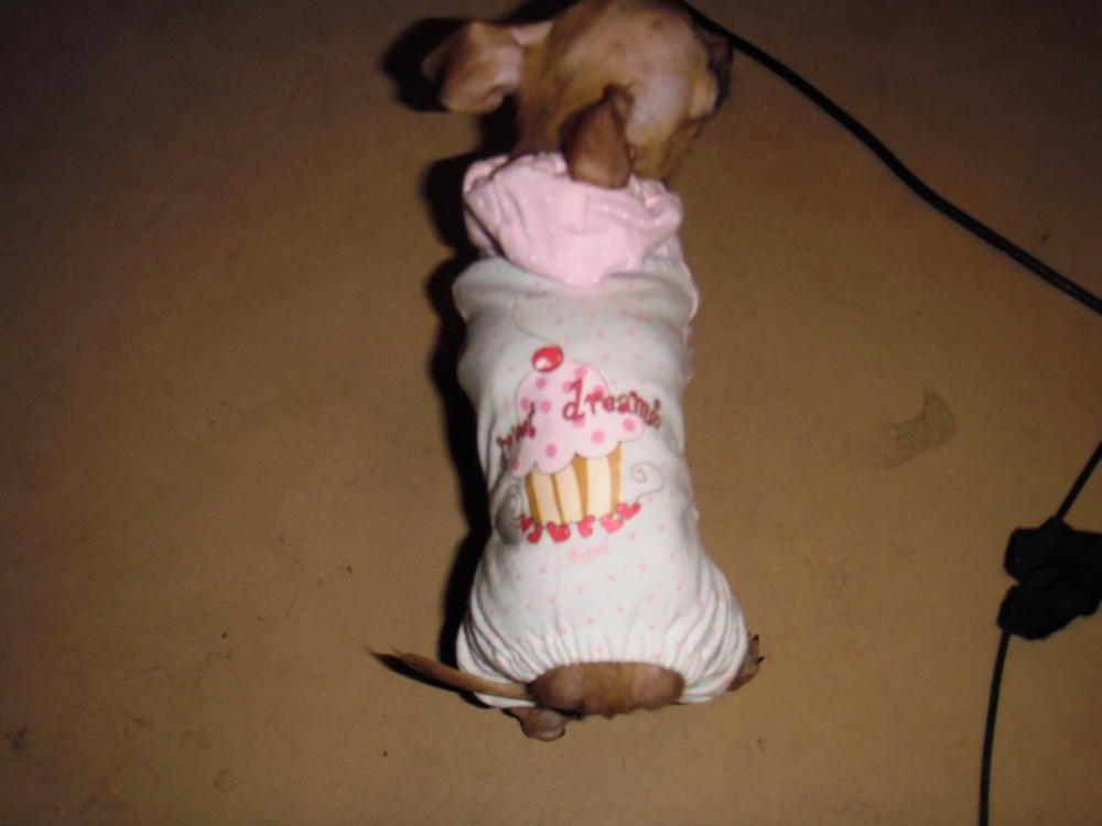 А кокого цвета пижамка?сфоткайте пожалуйста так и на собаке
