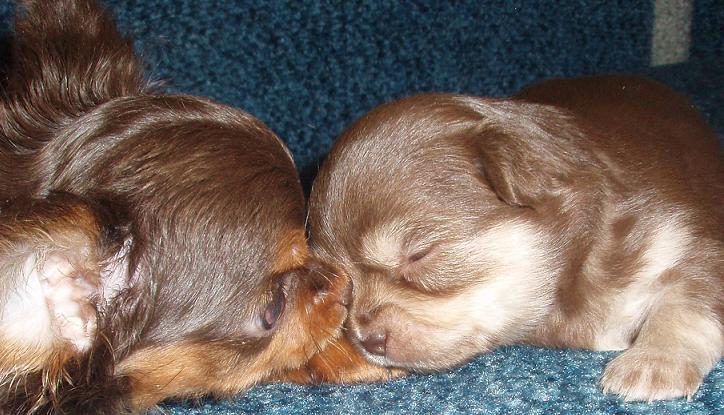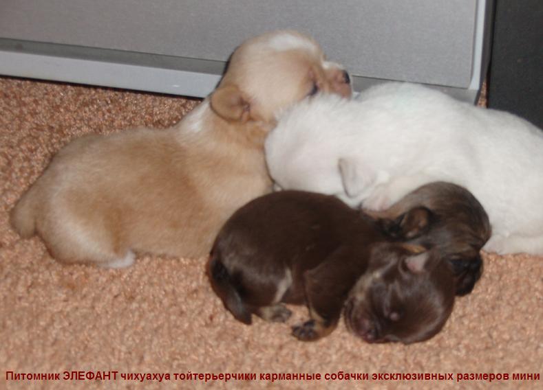 Прочитала тут одно выражение - просто глупое очень! Если мол МАМА без документов то однозначно ДВОРНЯЖКА!! Ну ерунда полная - не обманывайте себя! Люди имеющие средства никогда не опустятся до того чтобы оформлять на суку бумажки мало того еще и по выставкам ее водить!!! Ну вот посмотрите на выставках кто присутствует? Одни разведенцы! Где вы видели гламурную владелицу чихуахуа в соболях и простите гоняющейся за...титулом ЧР?? ОНО ИМ НАДО? А покупают такие люди далекооо не дворняг по экстерьеру! И платят далеко не три копейки - как иной раз выгадывать пытаются те у кого в плане поменьше вложить а получить побольше... И вообще просто из принципа на примере своего питомника показываю что чихуа разные бывают, не всегда суки и тем более щенки без документов - прямо таки и дворики. А вот к примеру шоколадные чихуахуа (возраст щенков разный - они алиментные от моего шоколадного кобеля потому на фото вместе - ну у обоих матери хорошенькие чихуашки живут в приличных семьях - не в питомниках вовсе. И вообще не знаю отчего так нападают на чихуахуа без документов порой только чего не говорят - способ что ли доказать всему миру что раз есть бумажка значит уже сразу и чихуахуа становится? А как же тогда все чихуахуа разноплановые именно с бумажками порой? С виду сколько раз бывает что и на чихуа не похожи а вырастут и подавно - и ничего ведь - бумажка есть значит собака породна... бред. Кроме бумажки еще важно соблюдение пропорций и стандарта мне лично так кажется. Сразу оговорюсь на шоколадных чихуахуа у меня очередь а показанные щенки давно нашли себе хозяев