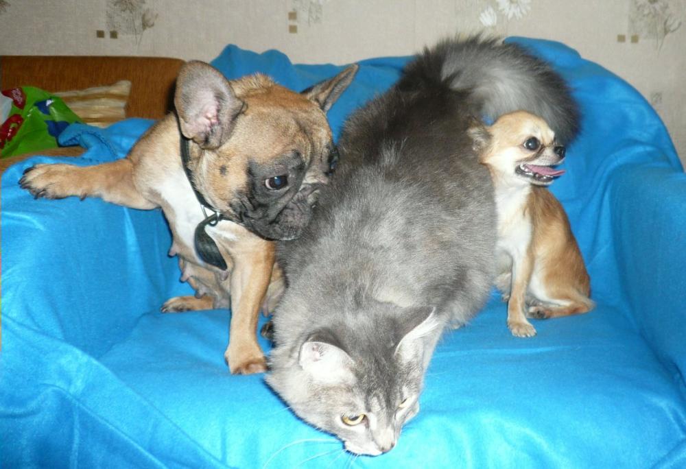 в семье живут наша тоечка, чишка ,2 французских бульдожки и кот