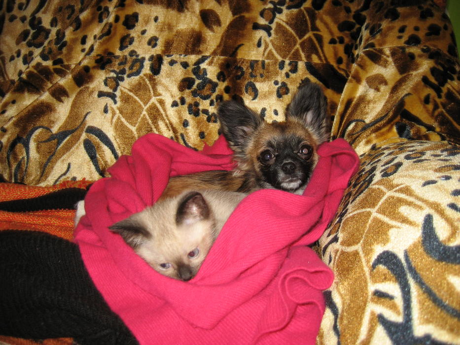 Спасибо, нам очень приятно! :grinning: А чем же коту-то мука?:confused: Наоборот, ходит за Бонькой как за мамкой, спать к ней поближе норовит забраться... :laughing: Это Бонька, боюсь, скоро от него бегать начнёт: он её то за лапу схватит и повиснет, то за хвост, за уши дергает...:laughing::tearsofjoy: