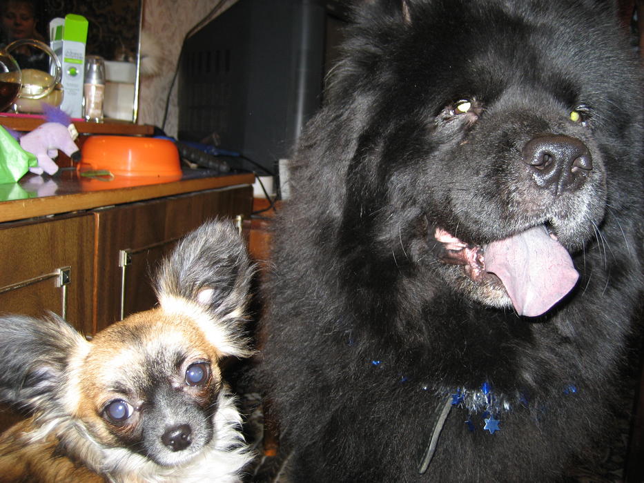 А еще к нам в гости на новогодних каникулах приходил большууущий медведь (собака брата) по имени Джим, но мы его совсем не испугались и даже поначалу рыгали из-за двери (вдвоём с котёнком, хором!):grinning:
