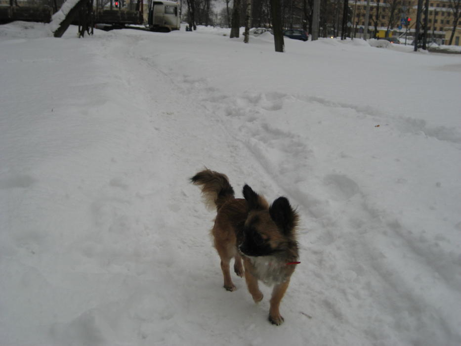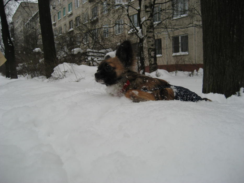 Сегодня постараюсь Боньку сфоткать в полном обмундировании, а то на фотках мы только штанишки от комбезика одевали, дабы тепло было, да и из них Бонька вскоре выскользнула (когда плавала на пузе в снегу) и бегала как всегда голышом.... (ну не нудистка ли?:laughing:)
