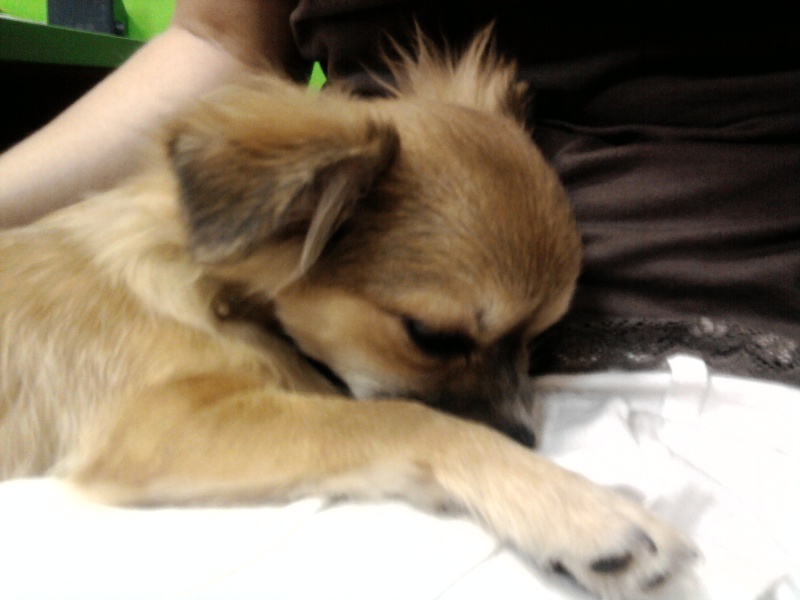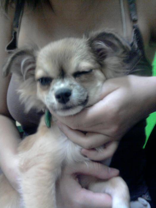 Где-то в начале весны меня одолело страшное желание завести собачку. Хотела не большую, а декоративную. Хотела, хотела. лазила в интернете, смотрела объявления. Потом вроде переболела и как то успокоилась. И тут приблежался мой день рождения. Мое желание вспыхнуло снова. Даже имя мальчику будущему придумала _ Чип)))Поначалу безумно влюбилась в йорков. Чихуа исключила сразу. Типа, трясутся вечно, забитые маленькте существа.. Но потом началось нечто. Рассказала мужу, что хочу завести собачку, он был в шоке и в ярости. Просто дикая ревность, мол, меня забудешь и разлюбишь из-за нее!! ну что за бред? Мужчины как дети! :laughing: В общем уламывала, уламывала. Ни в какую. Или я, или собака. Ну что тут поделаешь.Потом проштудировав все объявления, поняла, что йорки ооочень дорого стоят. Я расстроилась жутко. Причем мне не надо было супер пупер титулованного. Я же для себя, для дома хотела. Ну и в общем потом я случайно увидела мохнатика маленького в интернете. и увидела что это чихуашка дш. Моему восторгу не было предела. Какая прелесть. Целыми днями на работе сидела в интернете, искала объявления о продаже чихуа. Много всяких было. И цены тоже приличные! От йорков далеко не ушли. И тут я совсем огорчилась. не видать мне собаки. Потом все таки мужа уговорила на собаку. Но он сказал что столько денег на ее покупку не потратит никогда.:aggressive: Сказал найдешь недорого, купим. ну я и искала. искала, искала и нашла. маленький лисенок. Когда увидела фотку влюбилась. Тут позвонила заводчице узнать почему цена не высокая. Она сказала что он не годиться для выставок, поэтому и не дорого. Мне было все равно, я не собираюсь на выставки ходить. Приехала с подружкой к этой заводчице смотреть. Меня просто убил запах, стоявший у нее в квартире. Вонь не выносимая. У нее жили мама чихуа с папой, и три щенка. Кроме них еще была всякая живность. Показала награды, кубки, родословные. Все малыши ооочень красивые. Мой потенциальный щенок в живую понравился еще больше. )) Немного разочаровало что он уже к тому моменту был четырехмесячный. Довольно таки взрослый. Но мне было все равно. Ну и все, оставила предоплату. На следующий день побежала покупать всякие принадлежности для моего песа)) А еще на следующий день поехала за ним)))