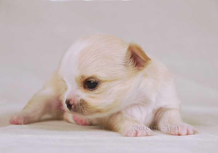 Блондиночка для ее возраста выглядит вполне приличной .Но о перспективах в месячном возрасте очень сложно предполагать .Не знаю как там заводчица увидела в месяц зубы . У меня сколько рождалось пометов чихуа (пока правда не очень много в пределе десятка)зубы выходили у щенков ближе к 1.5 месяцам в месяц максимум прикус можно предположить и то без гарантий . Странные заявления заводчика в месячном возрасте о перспективах прекрасных для всех щенков . Я бы в таком возрасте делала менее категоричные прогнозы .