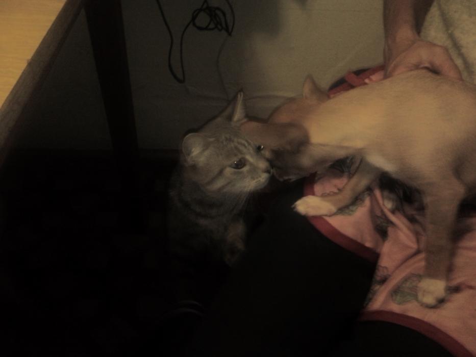 В конце августа ездили с Марселем в гости к моей маме- под Валдай. А у неё дома 2 взрослые собачки ( неопределённой породы), кошка и маленький котёнок. Так они Маське нашему проходу не давали! Я его бояась в этот зверинец выпускать и закрывала в отдельной комнате. Так они рвались туда как безумные!! Причём все хотеи с ним поиграть, а собаки так вообще не понимали что это за мышка такая