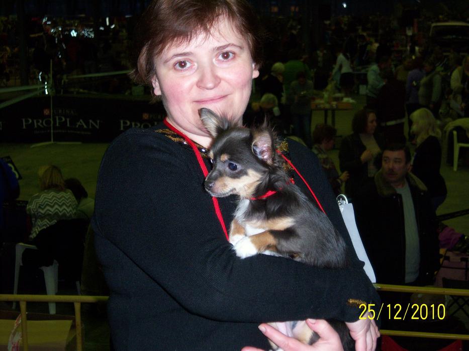 На 3-ей -после ринга второго, я даже и не поняла, что нам поставили, было много наставлений... Сказала, что собака хорошая, но надо прекратить целования и "уси-пуси", а начинать занятия, в юниорах она не даст такую оценку... Я спросила: "Выгоните?", Она: "Нет, но поблажек не будет!" Дана реально была никакая, как в угаре... На столе мне даже в стойку не дали возможности поставить (на это уходит 2-3 сек, Дана стоит хорошо), эксперт сказала, что ей самой надо все посмотреть...Я сказала, что могу поставить и показать стойку... Может, много говорила... Еще нам поставили диагноз: "Скорее всего, у вас после смены зубов будет прямой прикус, но это допустимо", пыталась считать зубы, я сказала, что было 6*6 (они меняются гармонично -наверху и внизу на вчерашний момент коренных 4*4, а по бокам стоят-пошатываются еще по 1 с каждой стороны на обеих челюстях, растут ровно, загляденье), т.е их все видно -6*6! Не буду спорить с экспертом, но у Даны отличные ножницы (пыталась сегодня заснять, мешают мои руки!!!) Решетникова же сказала -ОТЛИЧНОЕ СМЫКАНИЕ ЧЕЛЮСТЕЙ. Из всех дебатов о зубной системе помощник записала: "Прямой прикус, зубы в смене". И стоило мучать ребенка?.. Девочки, у нас НОЖНИЦЫ (вчера и сегодня во всяком случае, челюсть не плавает) Даночка стоически все это выдержала, молодчина!