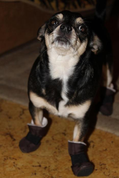 Девочки, покажу фото в ботиках, купленных вчера на йорк-шоу, получились "маски-шоу", несчастная собака, видео не сделала, мы все хохотали в голос, отчего Паня корчила рожи...
