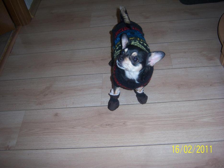 Еще комбез пыталась нацепить - мала кольчужка оказалась... Вторая щенка дала нам... прибавления по всем параметрам...