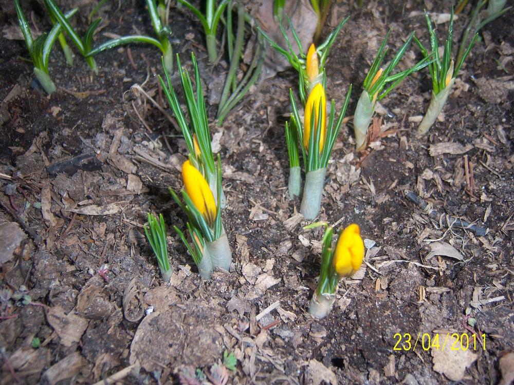 Надо поместить фото с дачи, так забавно... желтенькие, лиловые и беленькие выскочки-крокусы улыбаются, тут же через 3 метра сугробы 20-сантиметровой высоты... но настроение однозначно весеннее, птички поют, заливаются...