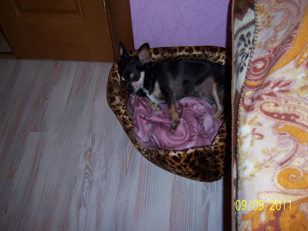 На четвертом: тоже дома, но уже после ремонта. Приходится ютиться в самом маленьком лежаке, дабы ушлые хозяева и его не умыкнули... и так всю мою любимую мебель вынесли на помойку - и знатный диван, и Дашину мягкую кроватку... вот и стерегу теперь... пока-то привыкнешь ко всему новому - необлежанному...