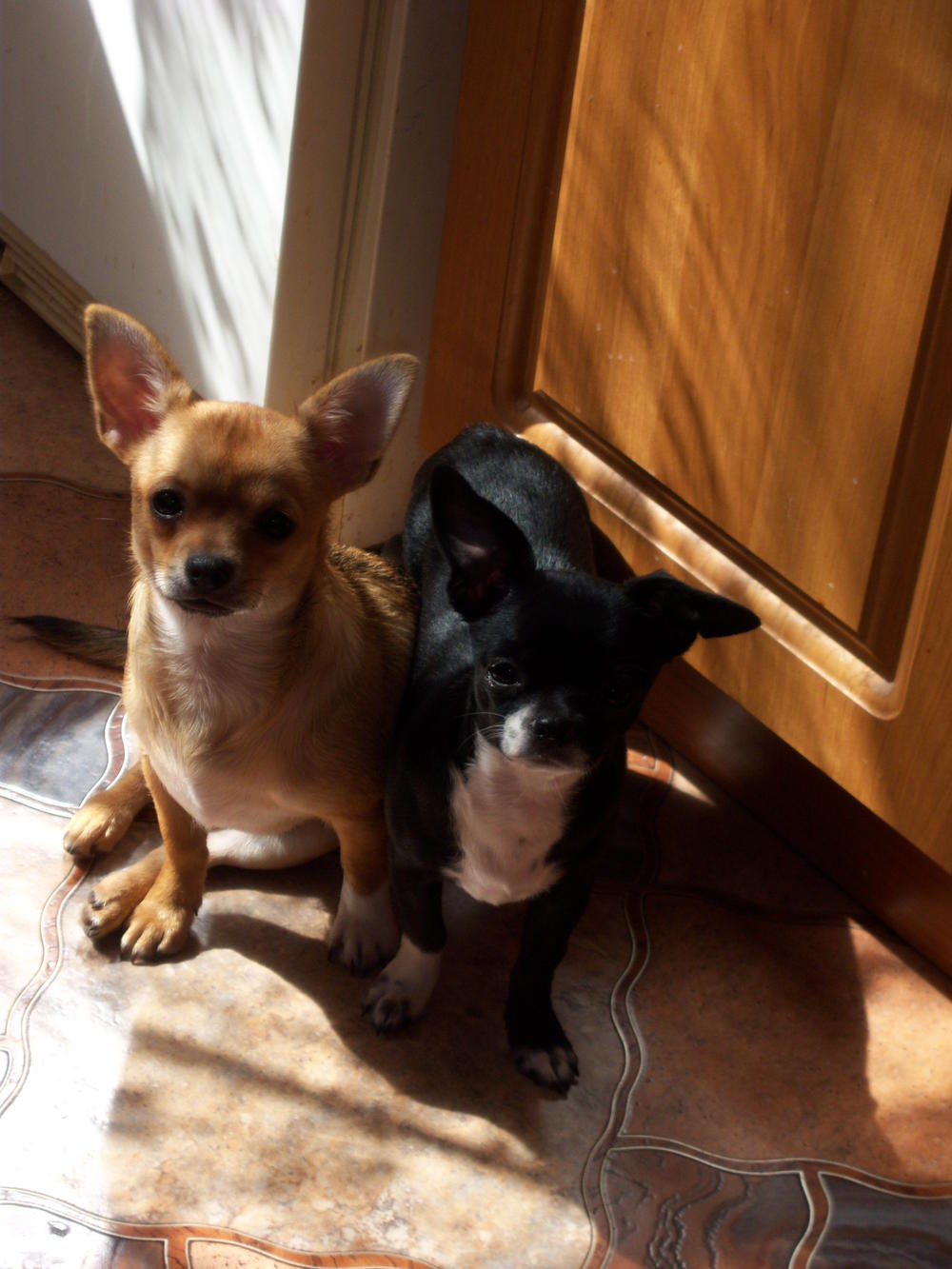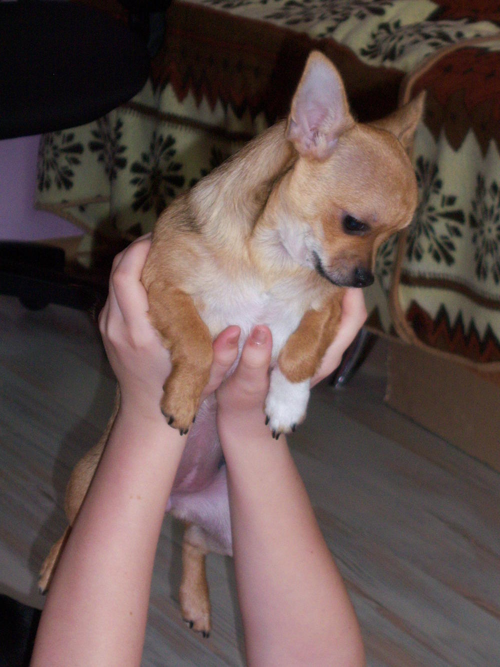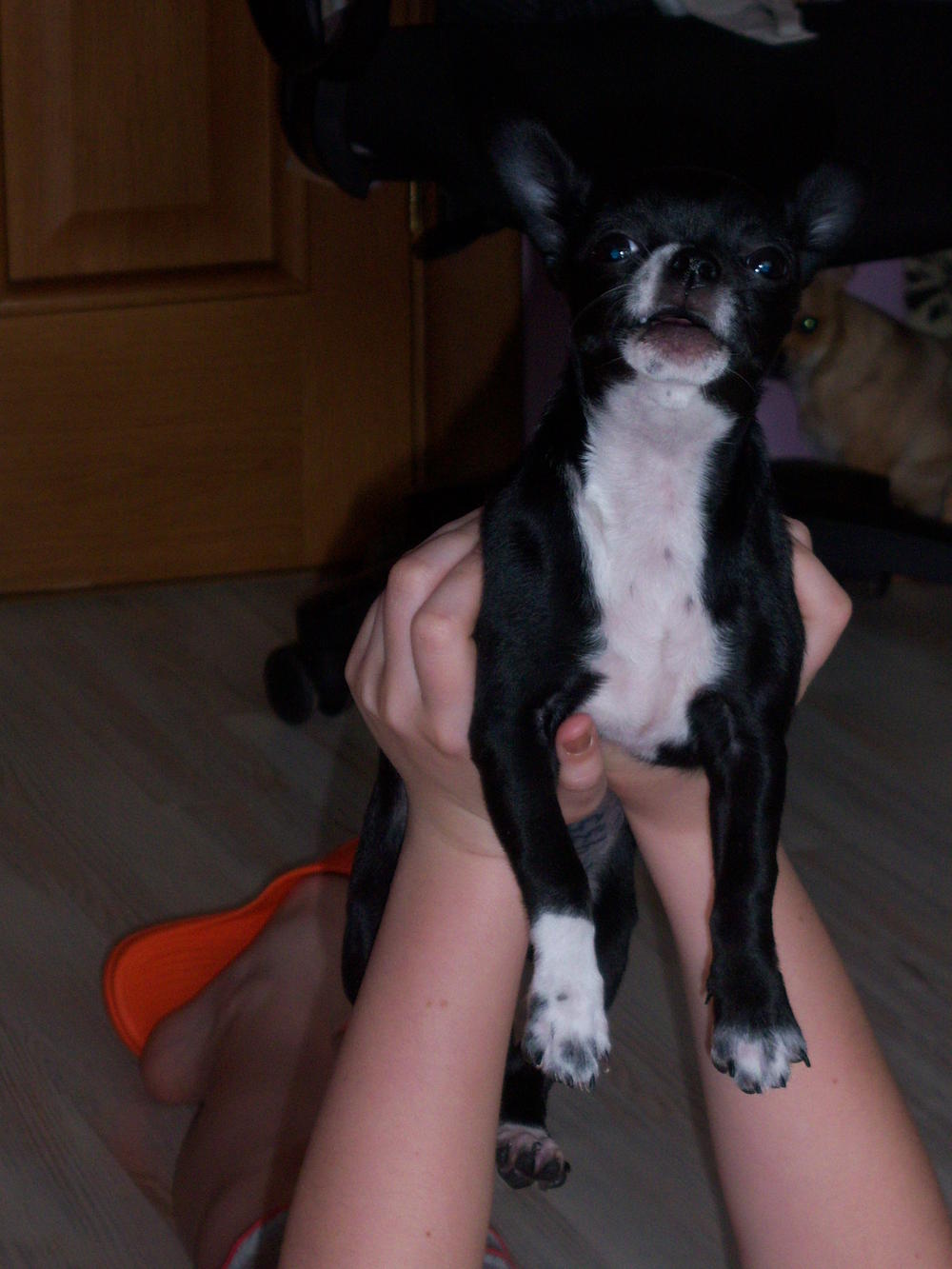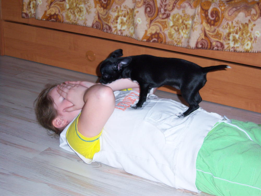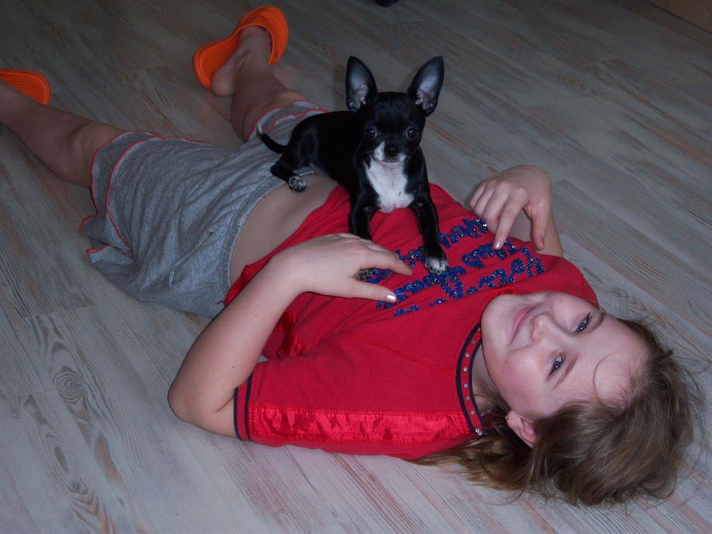 К нам приезжала моя одноклассница - рукодельница, привезла "макет" жилетки, которую мы благополучно нарядили на Феню и Чакки. Чакки не особо упиралась, даже не очень заметила наряд, а Феня оскорбилась по полной программе: