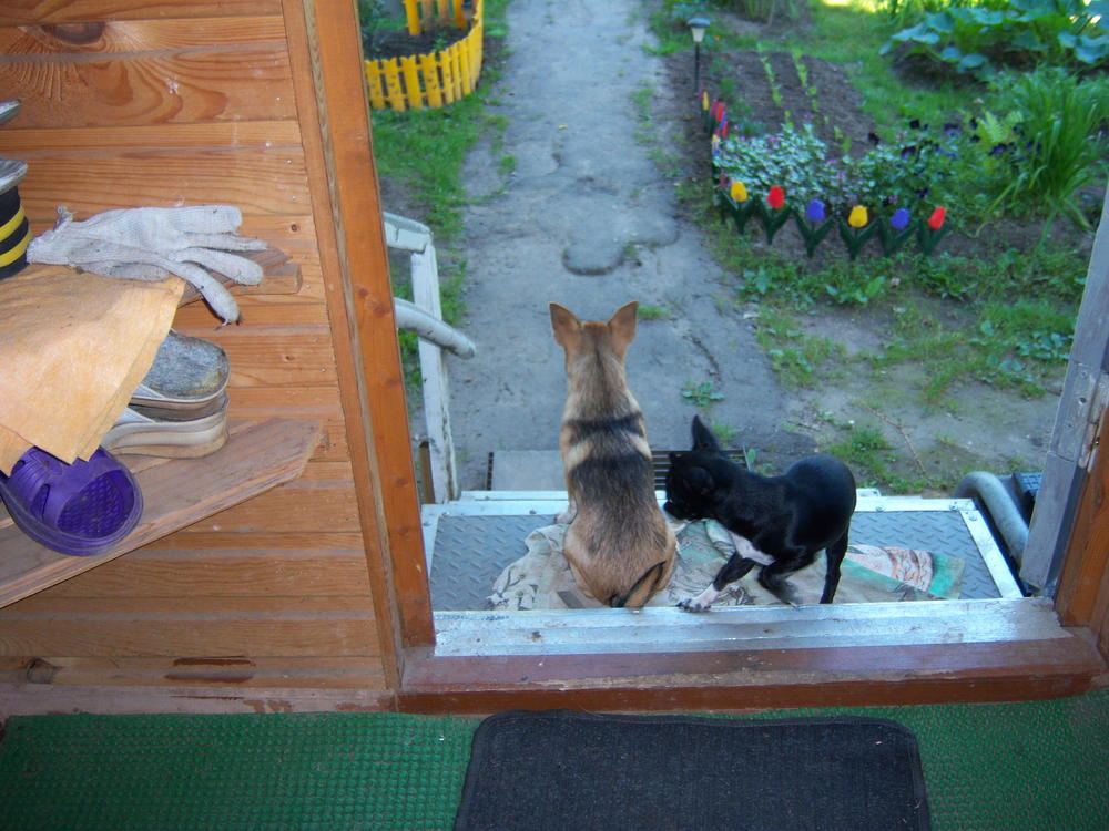 В выходные побывали на даче, так "наотдыхались", что собаки отсыпались по возвращению в Москву. Девчонкам на природе очень нравится - "швобода"!