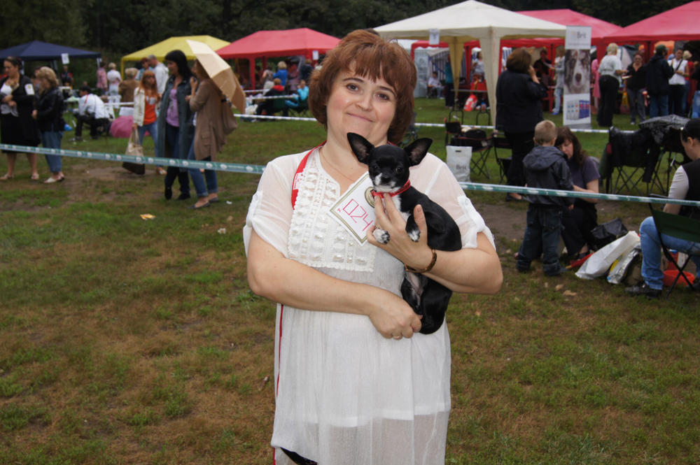 Поэтому пока 1 фотография с Чакки, это мы после монопородки (уже успели "переодеться", а то люди увидят красный цвет и испугаются)-хозяйка довольна больше Чакки! Пусть среди сук, но мы первые! :smile: