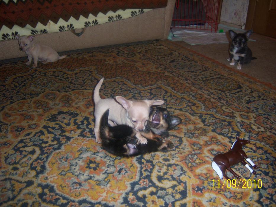 Даная подыскивает себе мамочку, я ей не мешаю. Остаться -не знаю... Но вот дочка точно ее не отпускает... Методично устраивает истерики...Пытаюсь сторговаться в буквальном смысле...Уговоры, что оставим в следующий раз, на нее не действуют...Полюбила с первого дня, мысли у меня бродили, уже успела пообещать (балда!!!), но тут -"сюрприз" с длиной шерсти... Я отмела этот вариант. А экстерьер у Даночки отличный. Повторюсь, она явный лидер стаи. Первая поняла, что кроме пеленок, существует лоток, сейчас обе девчонки через раз туда ходят. Мальчишки пока только на пеленку... Им и не надо, хозяева намерены гулять. Одобряю. Паня у меня уличного выгула, лоток после года не приемлет...