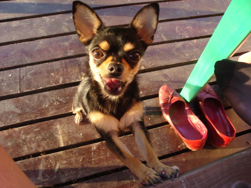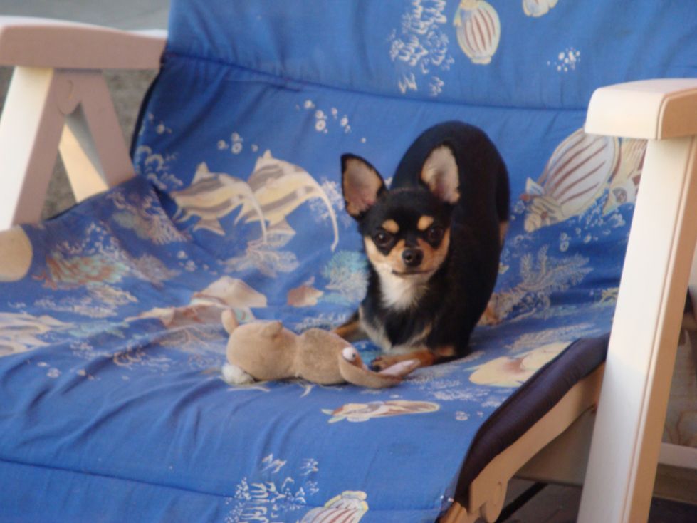 Всем привет. наконец-то добралась до форума. Зашиваюсь на работе. Вчера сделали фоточки. Много дачников приехали на выходные. Лари целый день бегала на улицу, ну пока всех облаешь:laughing:. Укусила сына подружки (сильно). Хулиганила целый день. Согнала меня с лежака и кайфовала.