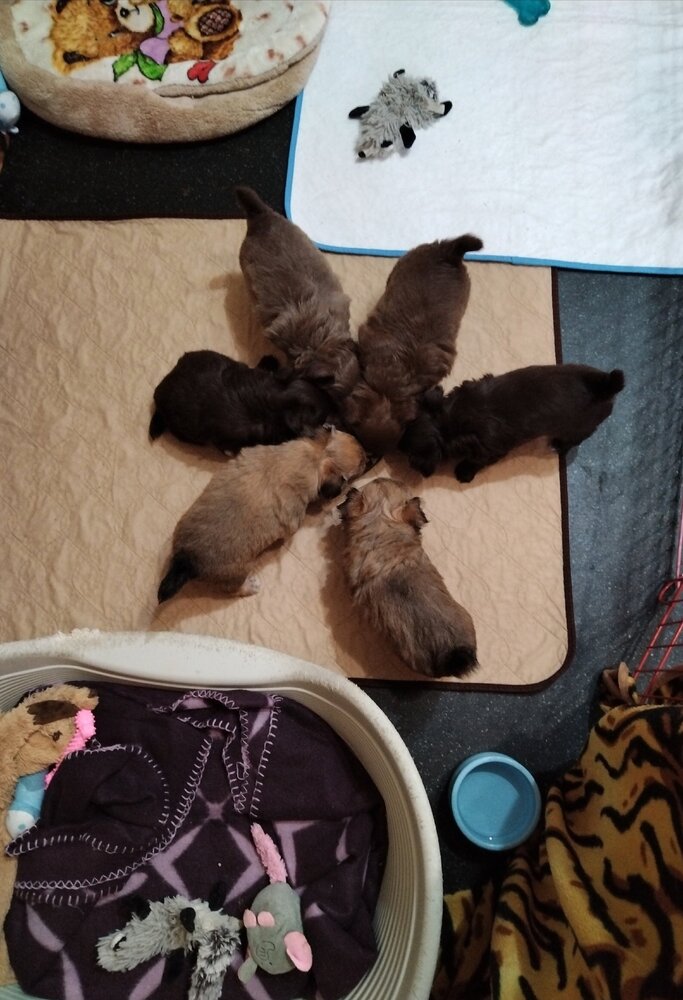 д/р - 12.02.2024 г., длинношерстная, окрас - шоколадный ("молочный шоколад"), на фото - 4 недели, ожидаю уверенный стандартный размер.