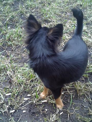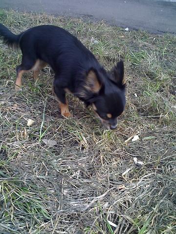 Вот, началась весна и мы с удовольствием гуляем по травке. Травка прошлогодняя, но уже пахнет живой землей. Карлуше очень нравится.