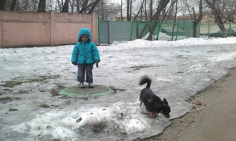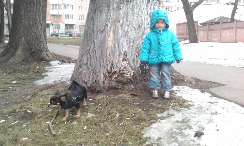 Наши фотографии с прогулки. Катюша 2,5 года и Карлос 1,5 года. Каждый из них считает себя более старшим и умным. У них очень интересная иерархия. Карлос из домашних порыкивает только на Катерину. Но безропотно дает вести себя на поводке.