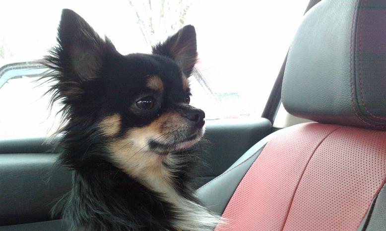 На фотографии - он в машине, сгорает от нетерпения, когда же выпустят побегать по травке...