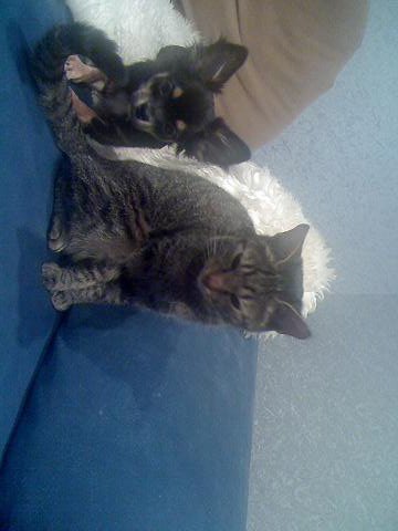 Вчера ночью фотографировала Карлоса с котей. И опять на телефон. :sm496: