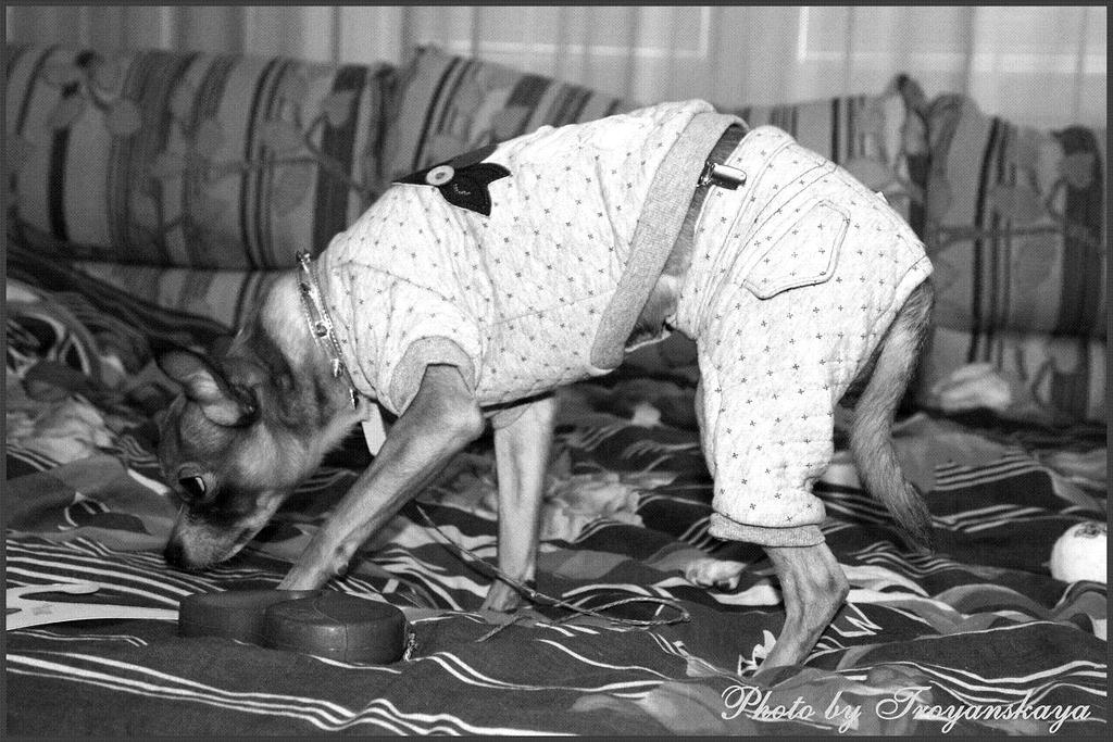 Вчера заказала своему "малышу" одежды,сегодня нам её привезли,но Трой категорически не захотел на себя это напяливать!С трудом его одела,но он начал отчибучивать такое,что мама не горюй!Катался,бегал по дивану и рычал как сумашедший,пытаясь снять с себя эту "гадость"!Вот запечатлела это дело,но по фотографиям не передать!Я ухахатывалась!:tearsofjoy: Особенно ему не понравились штанишки с подтяжками!:netttt: Меня хватило на примерку только одного костюма,остальное в другой раз!