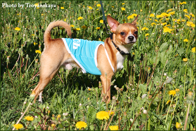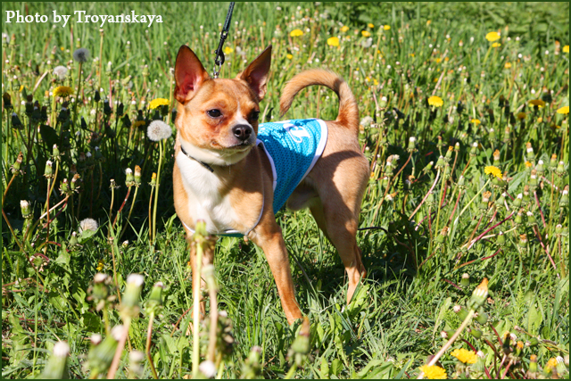 А вот и наш фотоотчёт с прогулки!Вчера нам привезли заказанную одежду,3 футболочки.С Троем гуляем каждый день,он уже без этого не может!