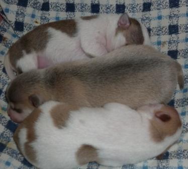 Мама бело-рыжая (за ней шоко, и шоко- триколор), папа (бело рыжий с соболем), за ним голубой...