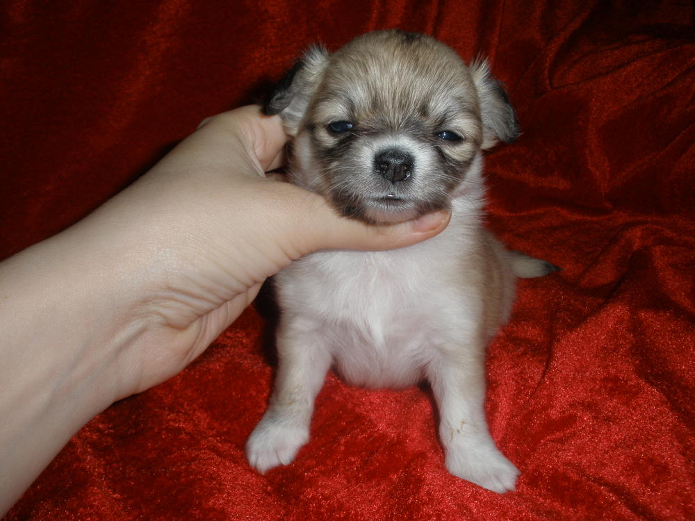 BLACK DZHIN, Танюш, на фото плохо видно пигмент, но если носик голубой, то щенок голубо-палевый.
