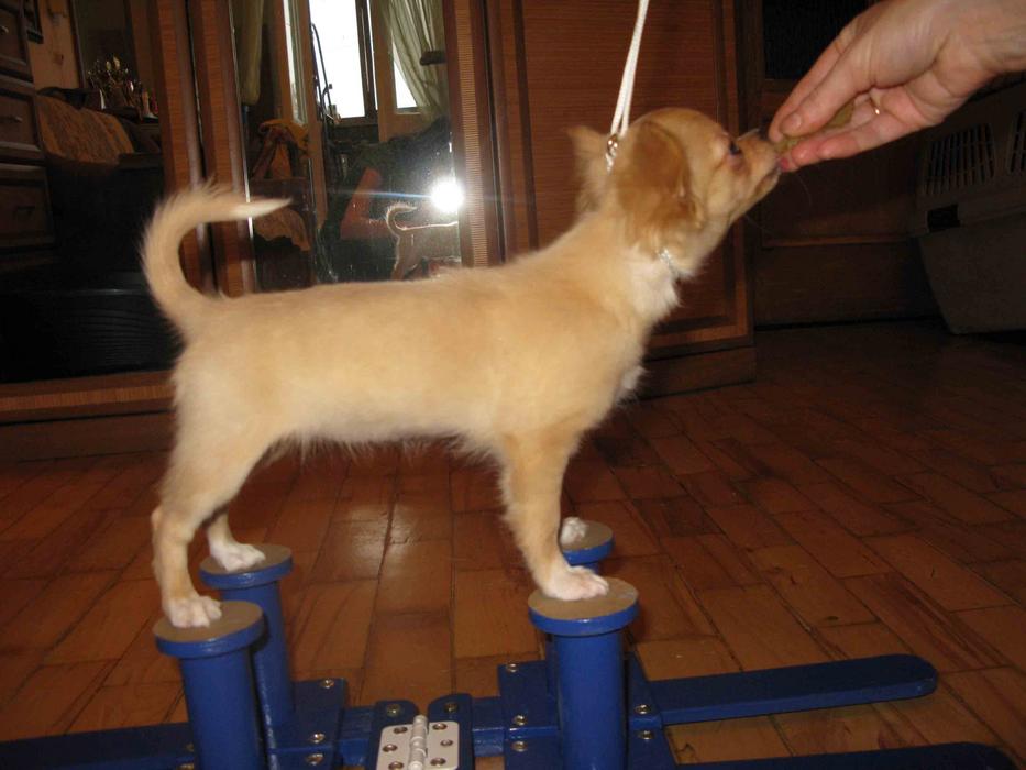 а ведь смысл тренажера в том, чтобы щенок, боясь упасть, стоял нешелохнувшись в стого опр. позиции: т. е. конструкция должна быть неустойчивой, только тогда собака найдет баланс, потом расслабится и запомнит правильное положение.