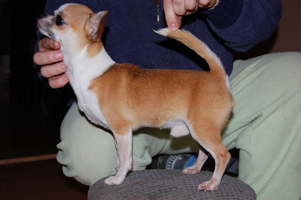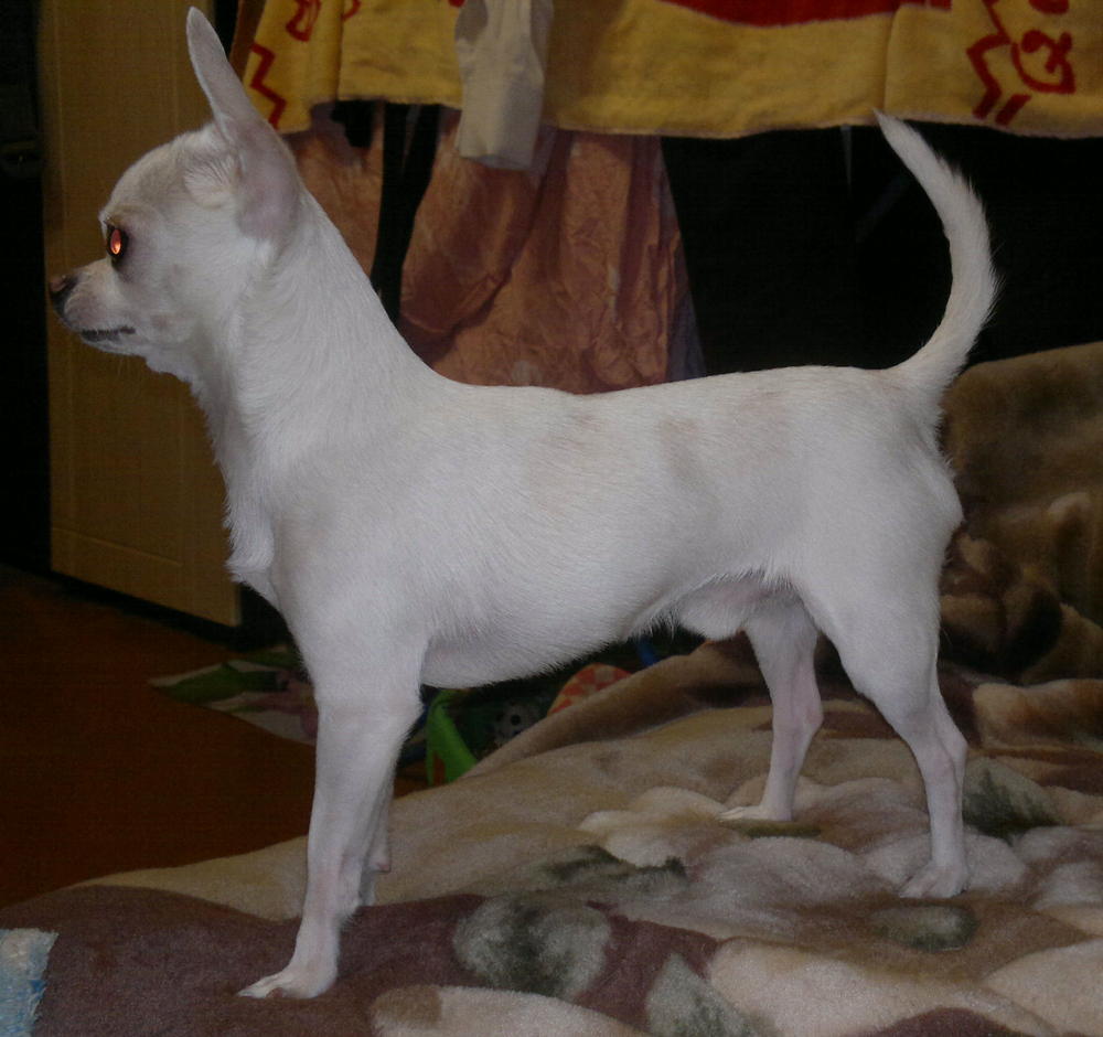 Анюта(Вик), что вижу я, нет углов у собаки, собака напряжена, хвост недостаточно высоко в свободной стойке.