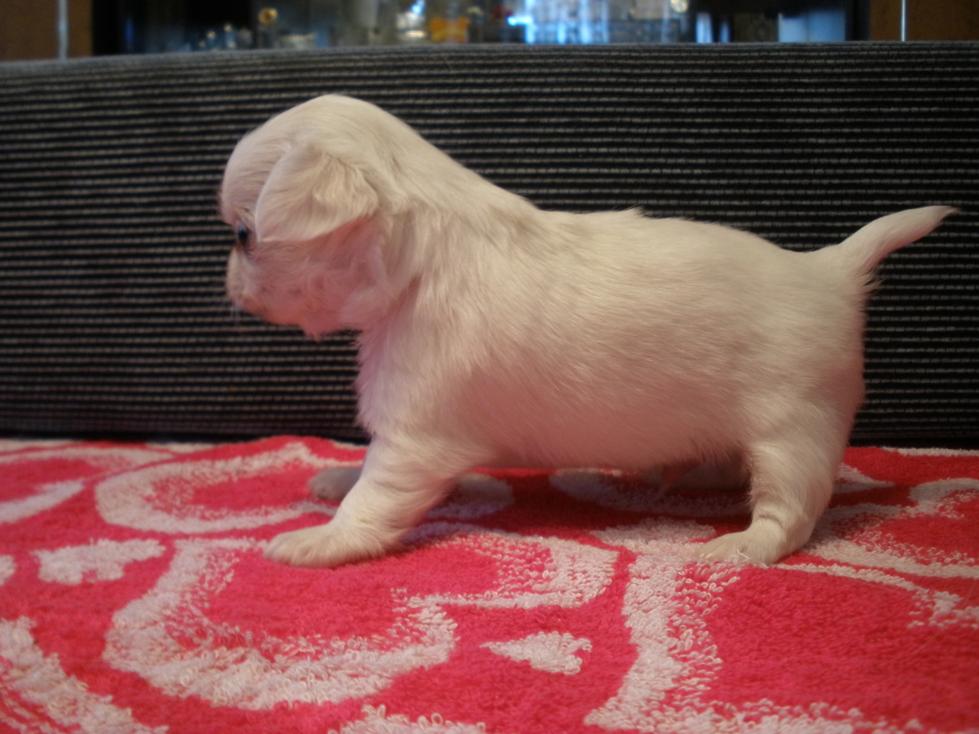 бело-кремовый мальчик зубки 6 на 6,ножницы. Мне кажеться ОЧЕНЬ перспективен для выставок :o (если где-то у ребенка шоколадный нос,то это девочка..могу просто спутать фотки)