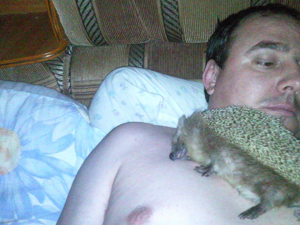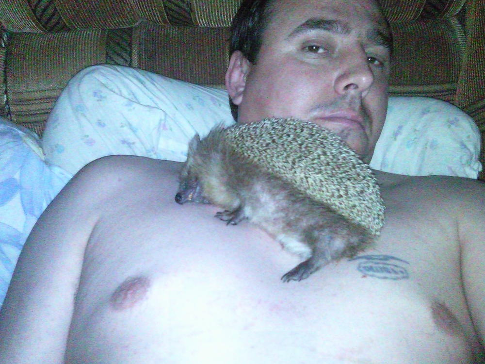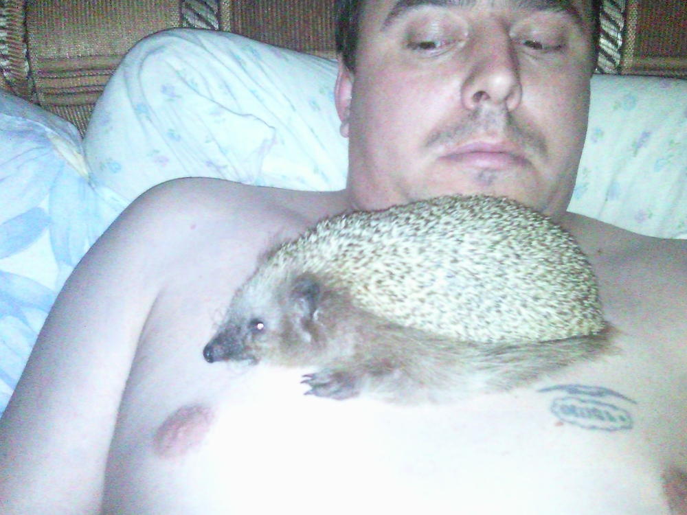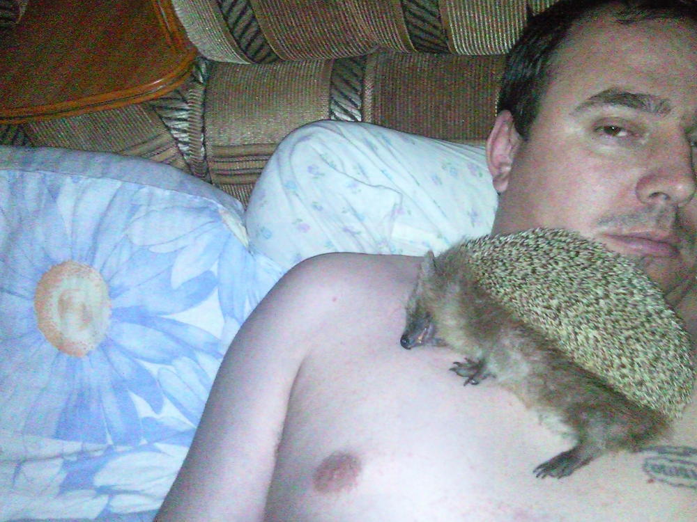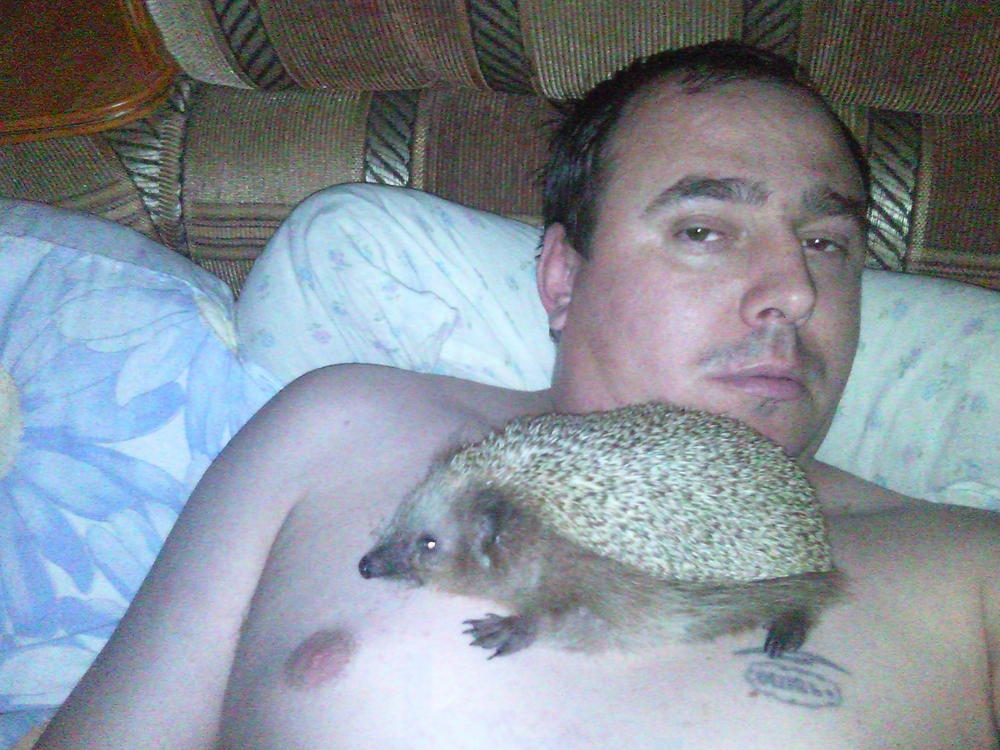 Покажу фото Брюшка-это ежик моего разведения который прожил в семье Александра не один год и умер своей смертью. В детстве это был самый не доверчивый ежик,а когда подрос то у Александра удалось подобрать ключик к его сердцу и он оказался очень добрым и ласковым.