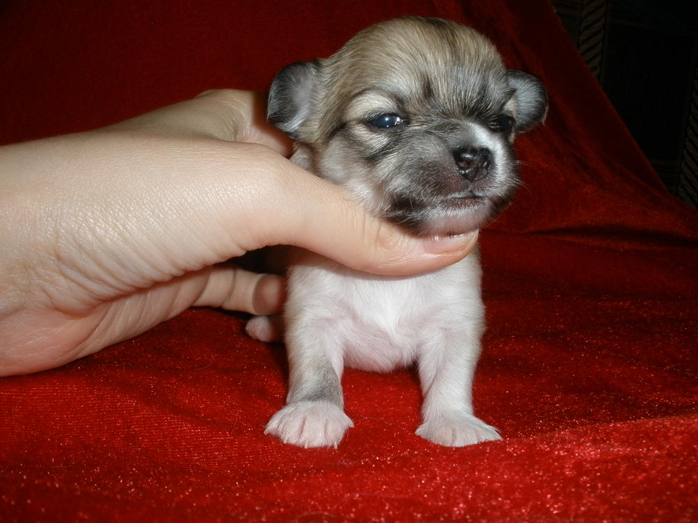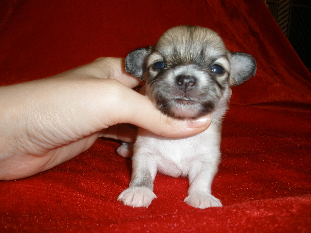 шоколадно подпалый мальчик из-за вспышки смотриться светлым и появилисьна фото белые пятна. в жизни насыщенный шоколад и яркий рыжий подпал,потом постараюсь сделать более качетсвенные фото)