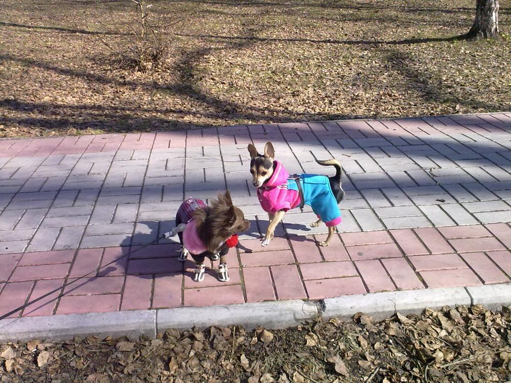 а то собирась с нашими северскими на прогулку так мои клушки от меня не на шаг..все собаки носились играли..а мы с моими сапогами прятались(