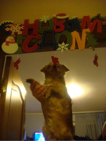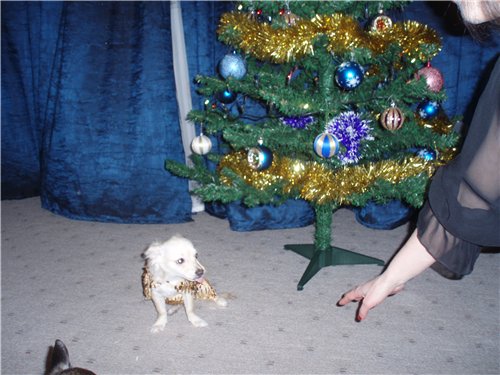 А это год мы встречали как игрушка под елкой :smile: Джуси так насмотрелась на гирлянду, что стала сама похожа на нее :tearsofjoy: