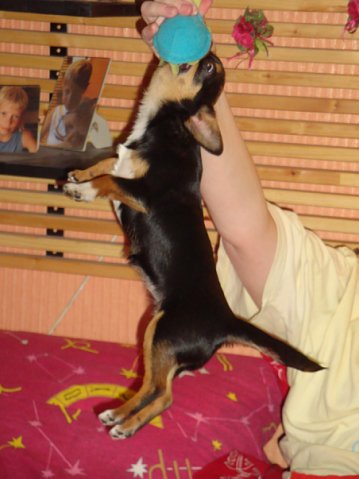 А вот так Мелиса может на игрушке висеть! Хватка как у бультерьера! поднимаю ее от земли-она не отцепляется!