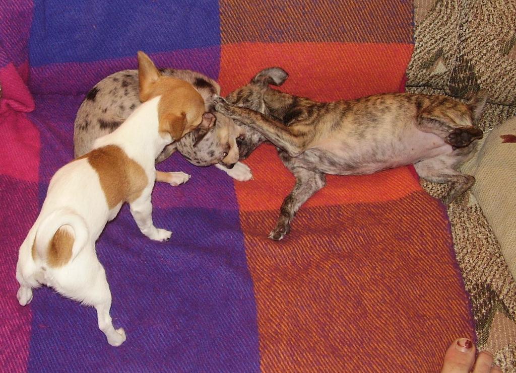 Какая замечательная куча-мала! У моей любимой Санечки фигурка уже такая взрослая-не щенячья-талия вырисовывается! :clapping: :clapping: :clapping:А мерлюшка-симпатичная очень даже!