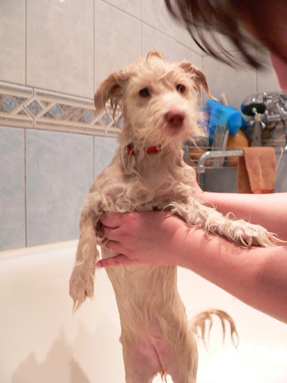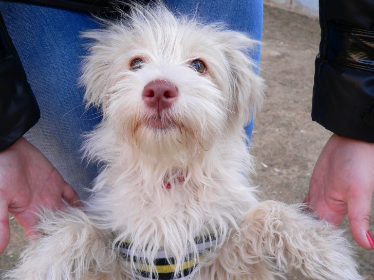 Может быть, кровь из-за смены зубов? Если зубик выпал, десна может кровоточить какое-то время. Для течки уж слишком рано. На всякий случай посмотрите на ее петельку, во время течки она сильно увеличивается в размерах.