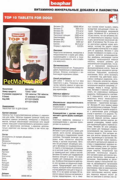 Дозировка: одна таблетка на 5 кг веса животного в день