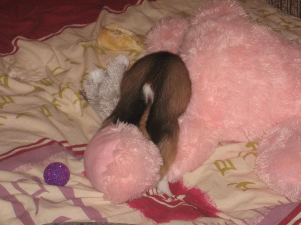 \Ирина Л. написал(а):Ну с кобельками всё понятно,а что делать если мы девочки? нам 4,5 месяца и мы тоже любим пошалить с ногой любимого зайца,вот где вопрос?:batut: