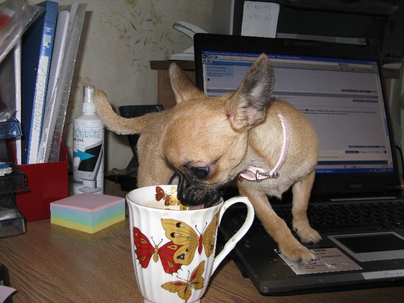 Классные вы очень! И компот пьете и с ноутбуком дружите. Собачка просто очаровательная! Красотка:smile:)):dancers: