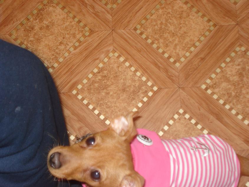 Крупненький, но это не беда главное любимый! И это видно!!! :wink: У него мордочка умная и выразительная, а носик целовательный!:gold: !!!!!!!! Маечка суперская. Люблю розовый, хотя считается что девчачий цвет, Шэрику на лето тоже маечку розовенькую куплю.