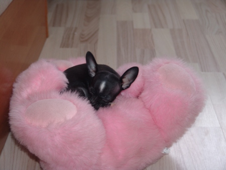 naeli az 110 g:smile: (ne mnogo li ?).za nedelku dolli nau4ilas nekotorim komandam!mi umeem po prosbe hozjaiki delat "golos"(pri4em objazatelno podprigivaem)znaem "mesto" a segodnaja mi nau4ilis delat"ladushki":smile:dolli4ka stoit na zadnih lapkah,perednimi delaet ladushki(poteshno slov net)